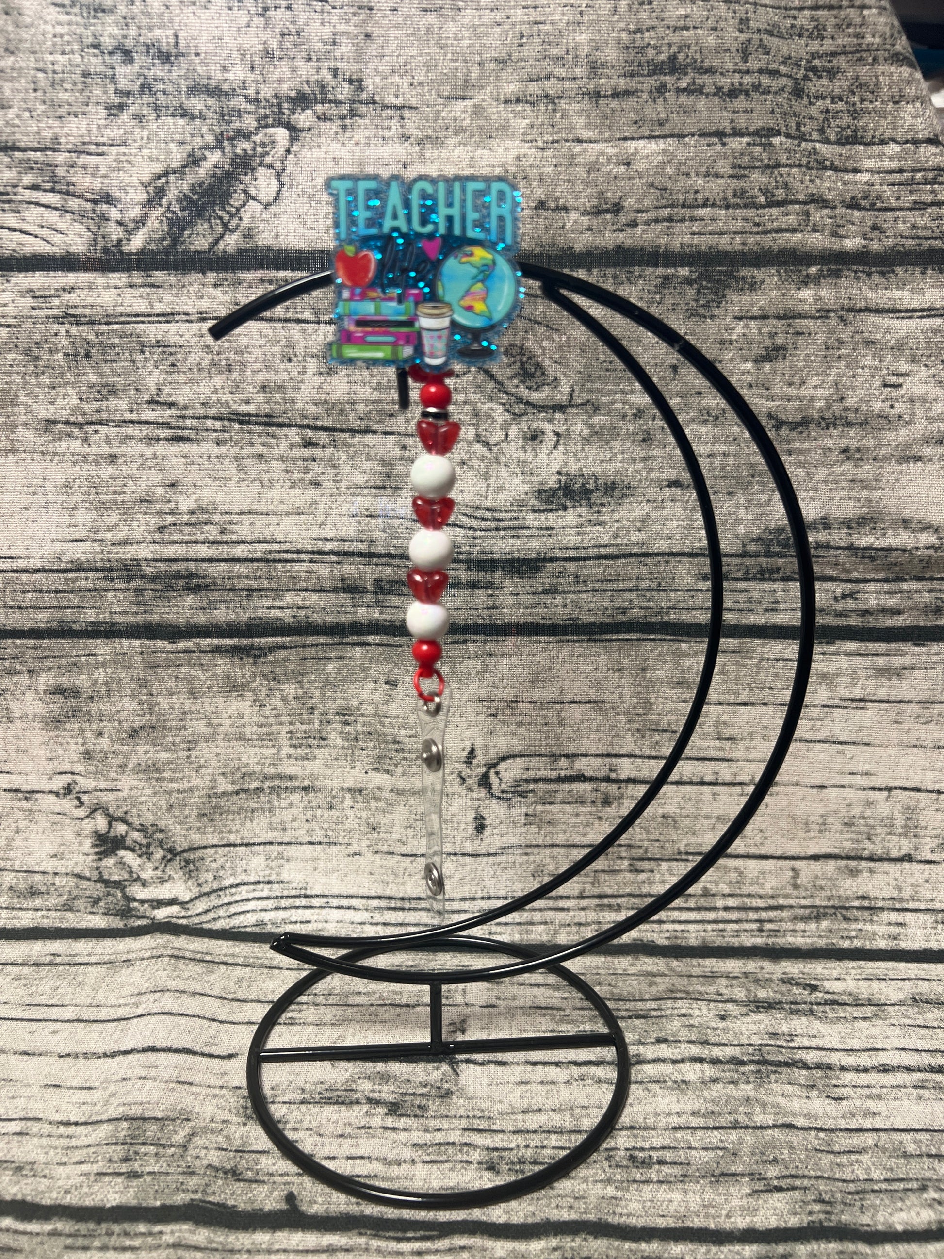 Teacher Red Flat Back Badge Reel